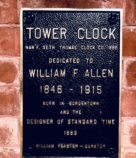 Until the 1800s, each community operated on its own “local time,” typically based on the solar noon. With the advent of railroads, people could travel faster than the sun, creating a need for standardized timekeeping. This clock stands in honor of one of Bordentown’s own, whose work helped establish standard time in the United States.